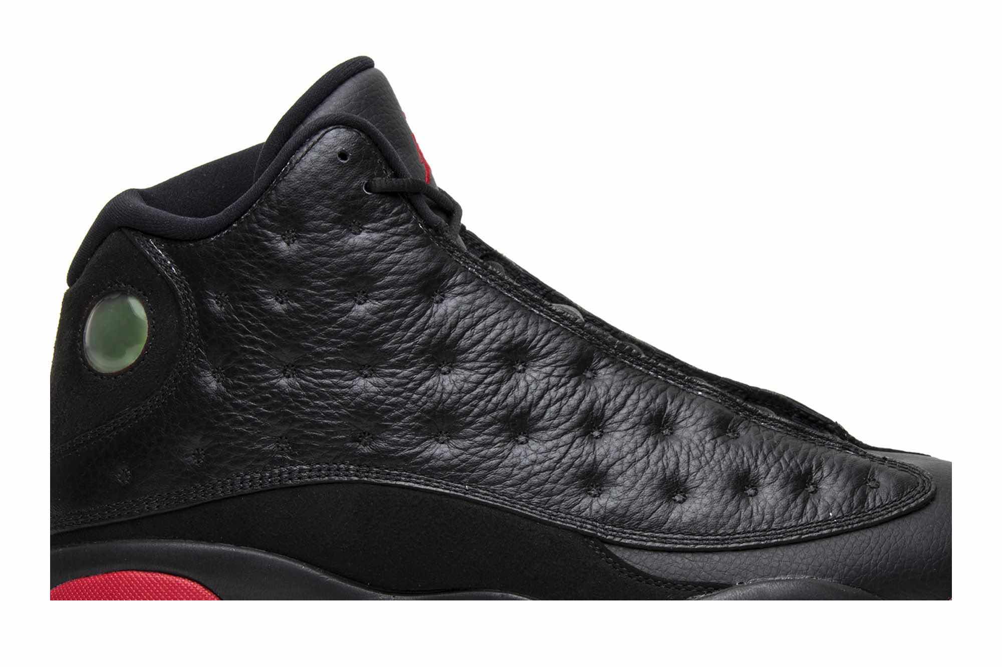 The Air Jordan 13 Retro ‘Dirty Bred’ was released in December of 2014. The sneaker features a black tumbled leather upper with black suede overlays wrapping around the base,a green heel hologram, and Jumpman branding. The Air Jordan 13 ‘Dirty Bred’ was originally a sample seen in an interview with Tinker Hatfield for a magazine publication but was never released until 2014.