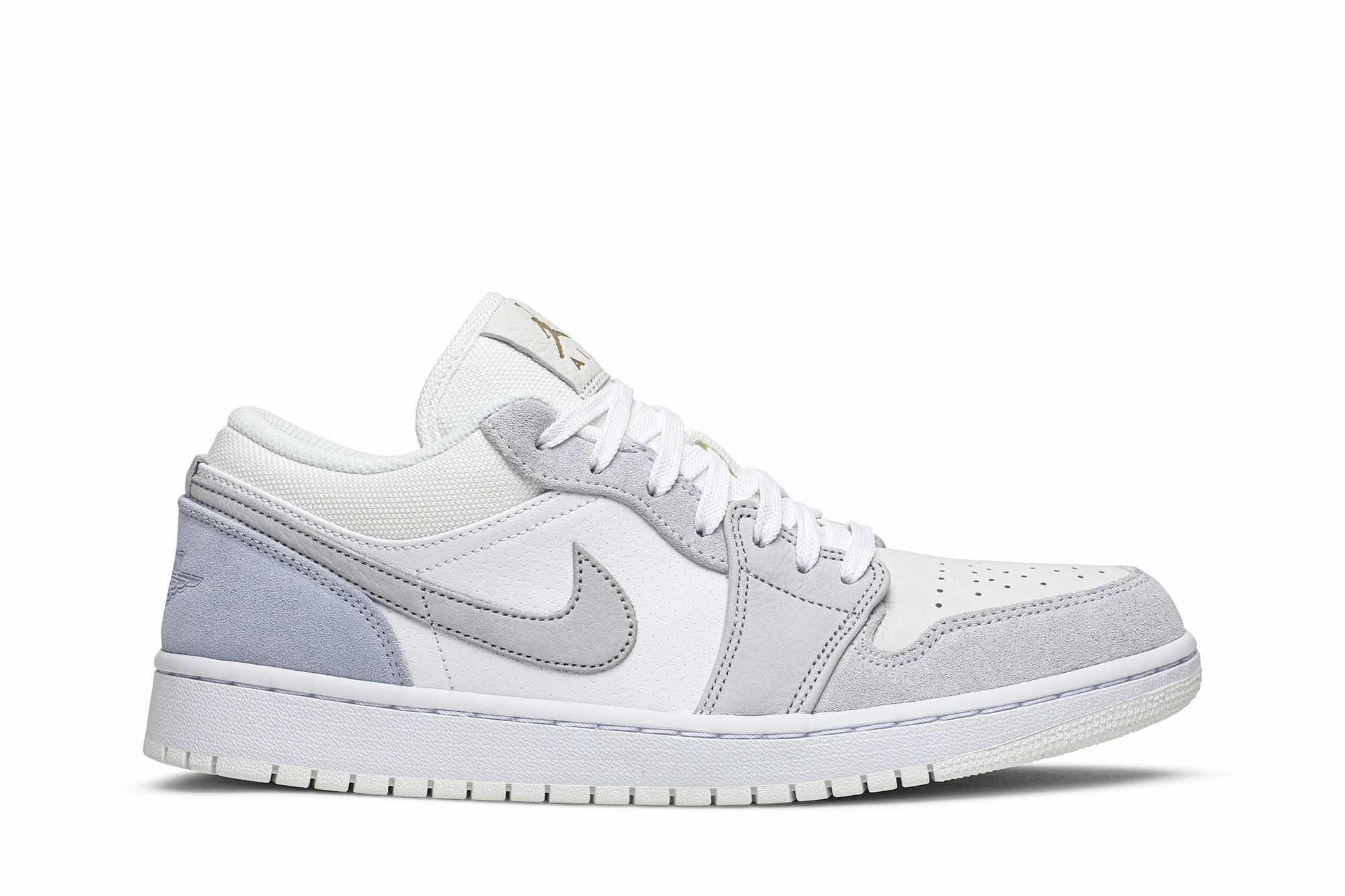 Inspired by the scenery of the City of Lights, the Nike Air Jordan 1 “Paris” is crafted with premium materials in an array of subtle colors. On the back of the heel is a light blue overlay embossed with the winged basketball motif.