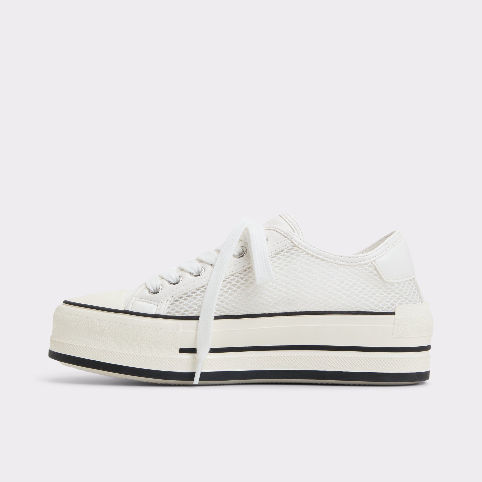 White Synthetic Mesh Platform Low Top Sneaker | Rayes – SOLZ8117